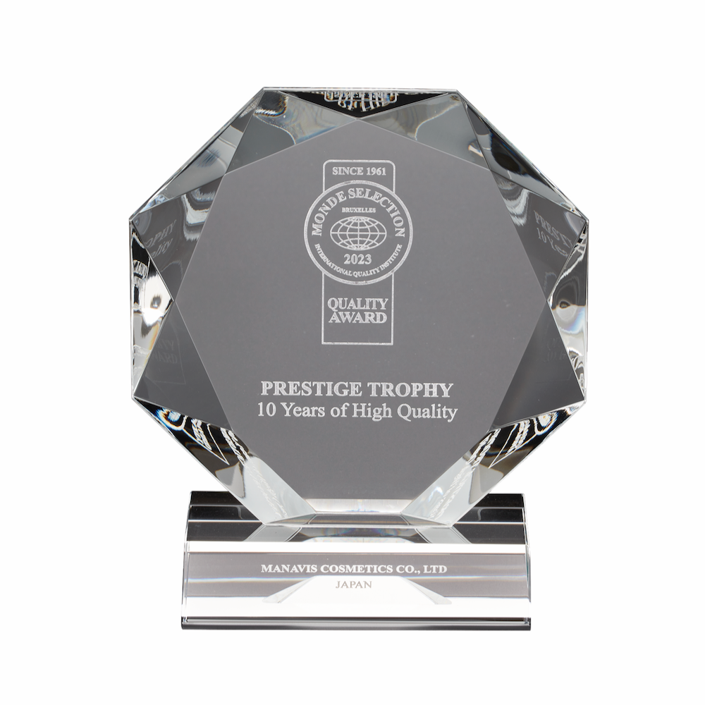 マナビス化粧品はモンドセレクションを10年連続して受賞した証として、こちらの記念トロフィーをモンドセレクションから授与いたしました。