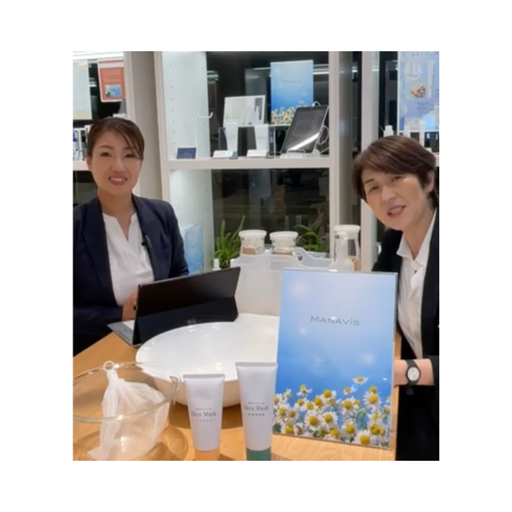 その後、ファーストセラムを使用するようになってから、肌を褒められることが多くなり、人前に出る事やメイクをするのも楽しくなりました。今では、高島屋さんとマナビス化粧品のコラボインスタライブにまで、自信を持って出演できるようになりました。