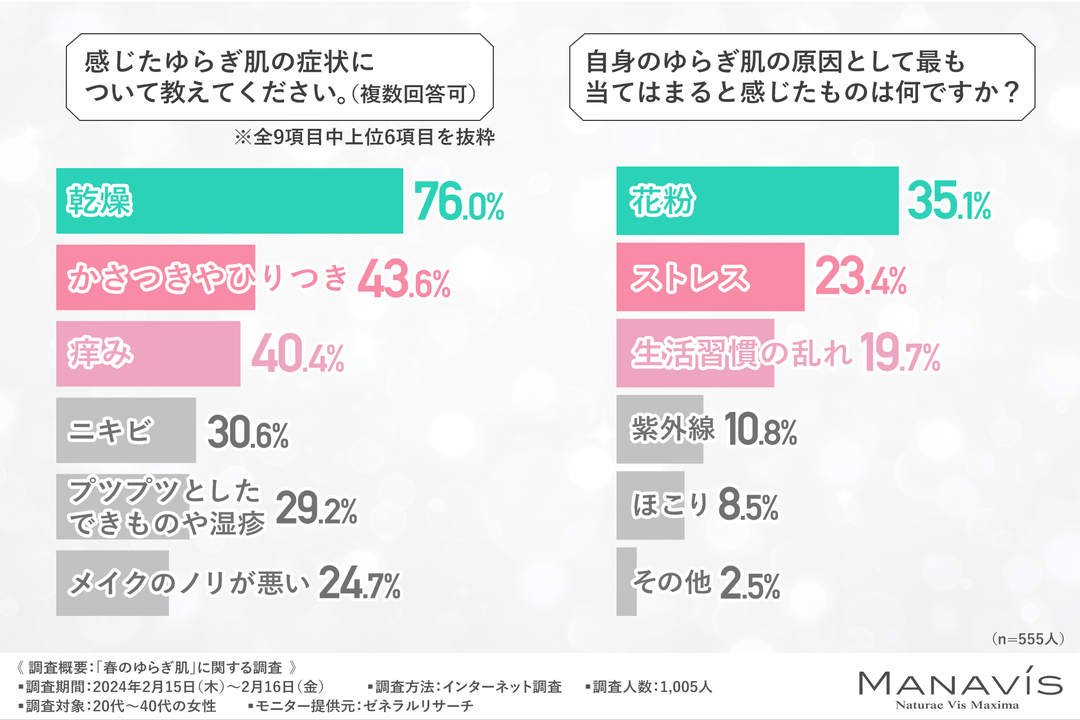 So, when we asked people what symptoms they actually experience as unstable skin, 80% answered "dryness (76.0%)."
