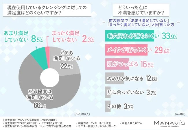 多くの方が現在のクレンジングに満足する一方で、一定数の方が感じる不満の理由とは?