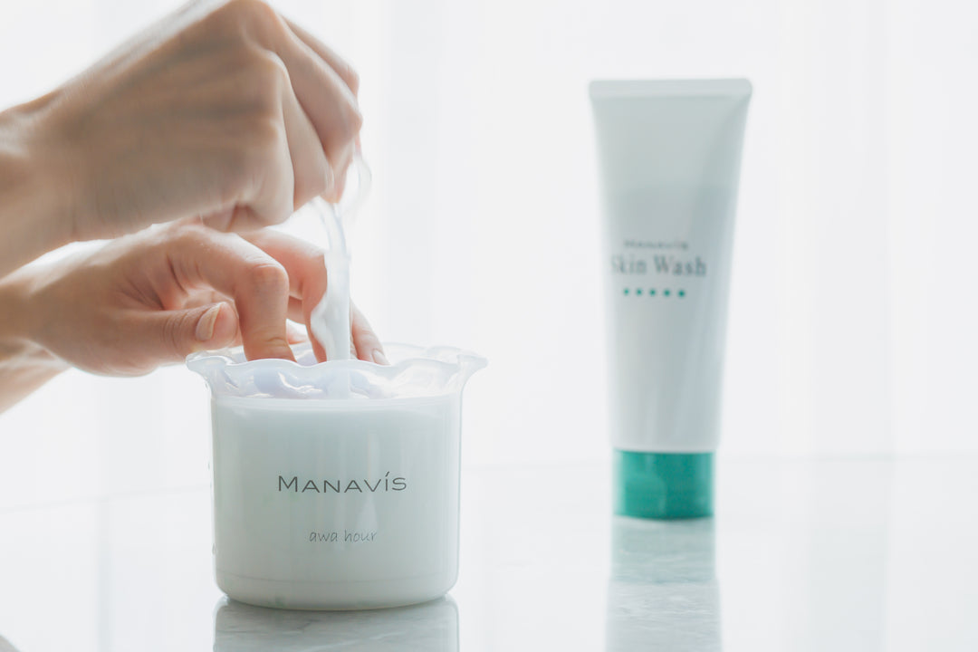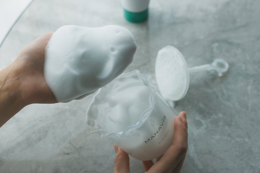 「マナビスバブルフォーマー(泡立て器)」をご使用いただくことで、洗顔料「薬用スキンウォッシュ」の泡立ちを良くし、よりきめの細かい弾力のある泡を作ることができます。